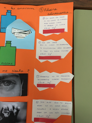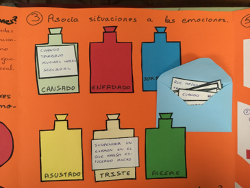 En la tercera actividad, planteamos diferentes situaciones las cuales teníamos que colocar en las botellas correspondientes. En la cuarta tarea, seleccionamos cuatro de las emociones y buscamos una fotografía relacionada con cada una de ellas. Debajo de dichas imágenes escribimos lo que podíamos hacer en caso de sentir esa emoción. Todo esto fue algo que previamente habíamos trabajado en clase.
